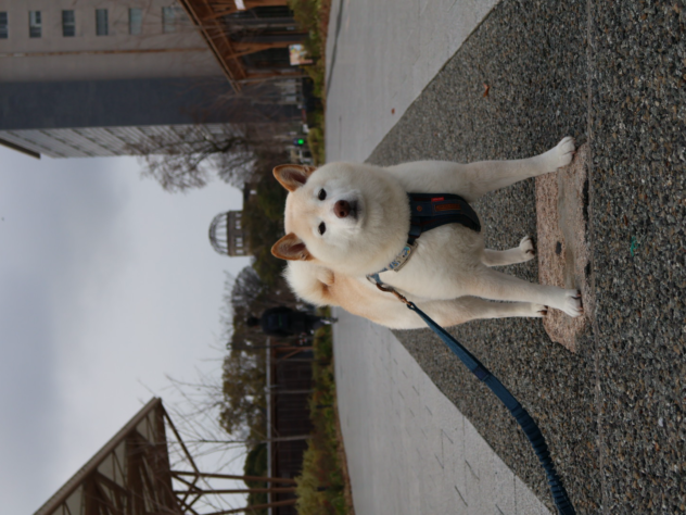 もこもこの白柴なつです!お出かけ大好き!
