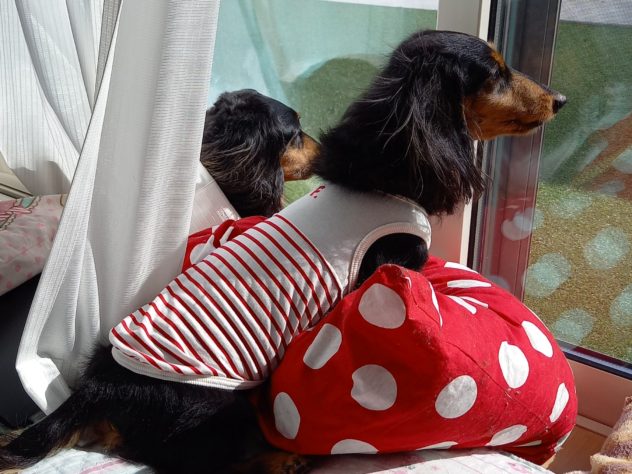 いつもこうして番犬してます?姉妹で共に11歳。