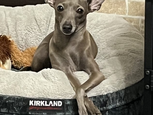 イタグレのハナビさん 2021.5月生まれ 少々小柄で、耳がピンと立っているのが特徴!(ミニピンとよく間違えられる?) 家ではジャイアン、外では犬見知りのかわい子ちゃん☺️