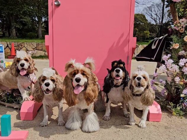 アメコカのエルメルファミリーです 5匹とも個性豊かな愛犬達です❤️ いつもハチャメチャなので5匹で写真を撮るのが難しい😄奇跡の1枚です❤️