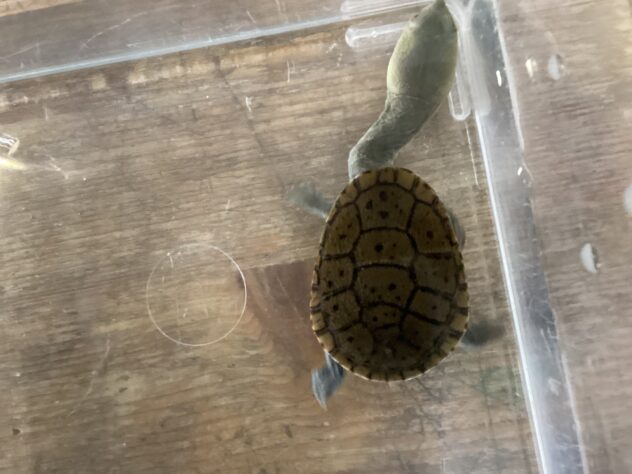 甲羅に収まらないほどのながーい首が特徴の水亀さんです❣️