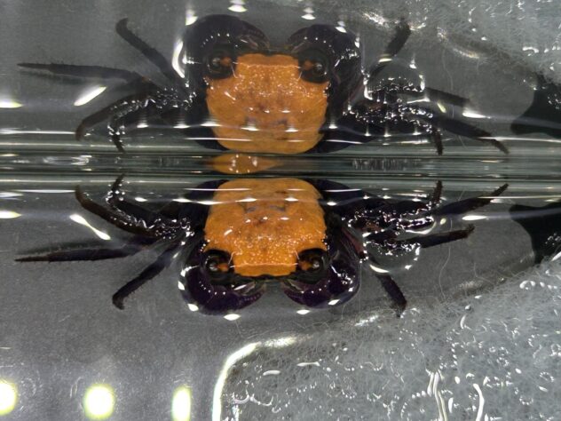 とても色が綺麗で正面から見た時は脚の紫がよく目立ち