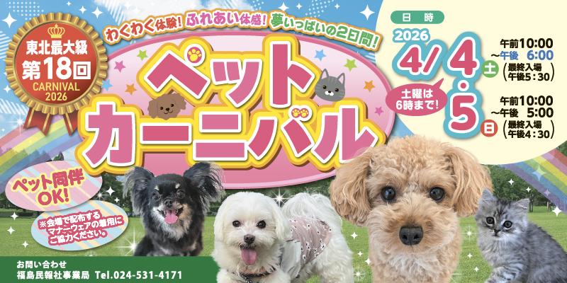 第18回ペットカーニバルがビッグパレットふくしまで開催されます!