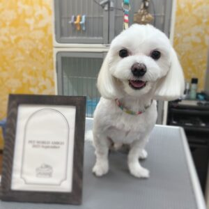 マルチーズのれおくんがシャンプーカットで来てくれました![]()