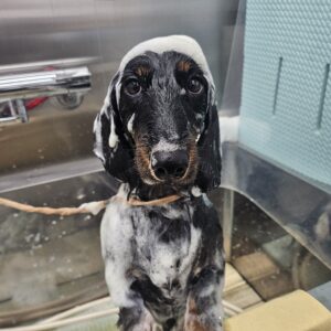 ミニチュアダックスフンドのごまめくんがシャンプーセットとデオふわコースで来てくれました