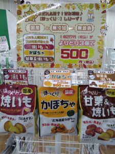 わんちゃんの大好きな焼き芋、カボチャ、甘栗があるのでこの機会にお試しください♪