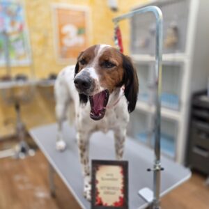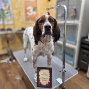イングリッシュセターのマロンくんがシャンプーセットと、部分カットで来てくれました🌰