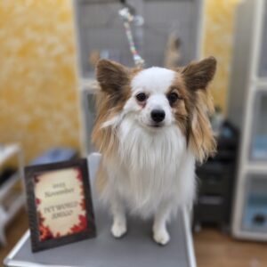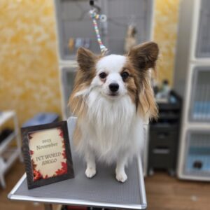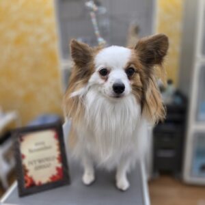 パピヨンのれおくんがシャンプーセット、部分カットで来てくれました![]()