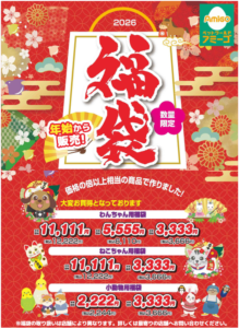 福袋は1月3日(土)10時より販売いたします。数量限定となっておりますので、お早めにご来店ください。