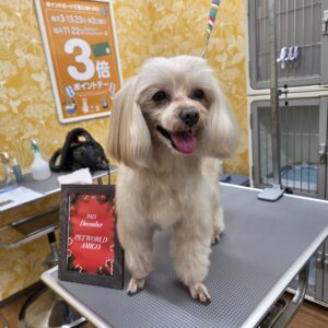 マルプーのチーズくんがシャンプーカット、デンタルケアで来てくれました🧀
