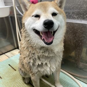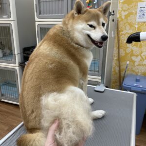 柴犬のチャチャちゃんがシャンプーセット、プレミアムスパコース、レーキング、部分カットで来てくれました