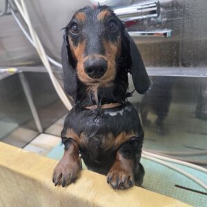 ミニチュアダックスフンドのくうくんがシャンプーセットと部分カット、プレミアムスパコースで来てくれました