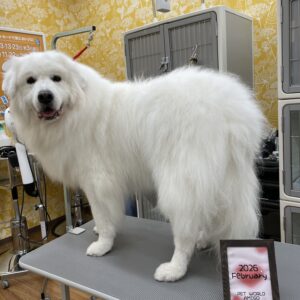 グレートピレニーズのクララちゃんがシャンプーセットとツヤさらコース、レーキングで来てくれました![]()