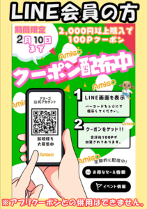 アミーゴではお得な情報やクーポンをラインにてお知らせしております。