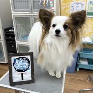 パピヨンのれおくんがシャンプーセット、部分カットで来てくれました