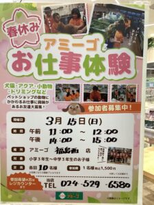アミーゴが好きなお子様、ペットが好きなお子様、春休みの思い出作りをしたいお子様、皆様のご参加をお待ちしております‼️
