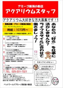 現在アミーゴ新潟小新店ではアクアリウムスタッフを大募集中です![]()