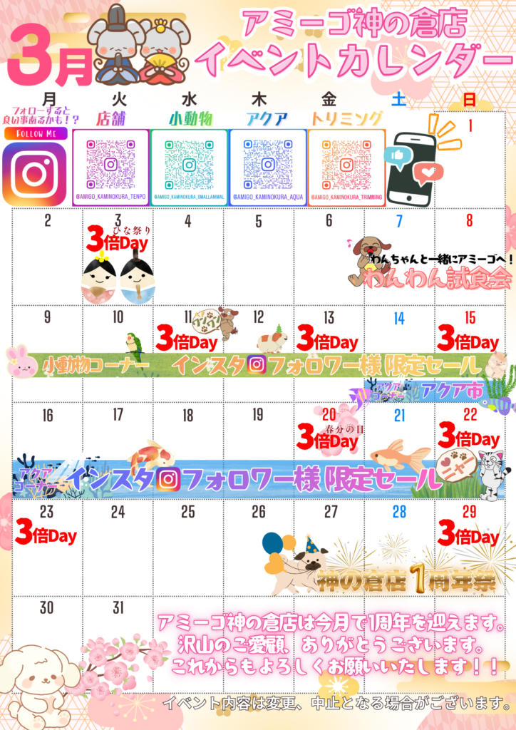 神の倉店 : 【お知らせ】3月イベントカレンダー✨