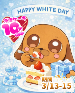 3月13日から15日はホワイトデーにちなんで犬猫冷凍ケーキがレジにて10%OFF🍰