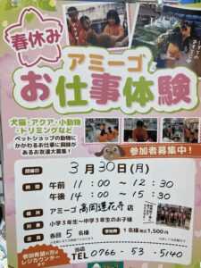 3月30日月曜日春休みお仕事体験を開催いたします。